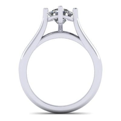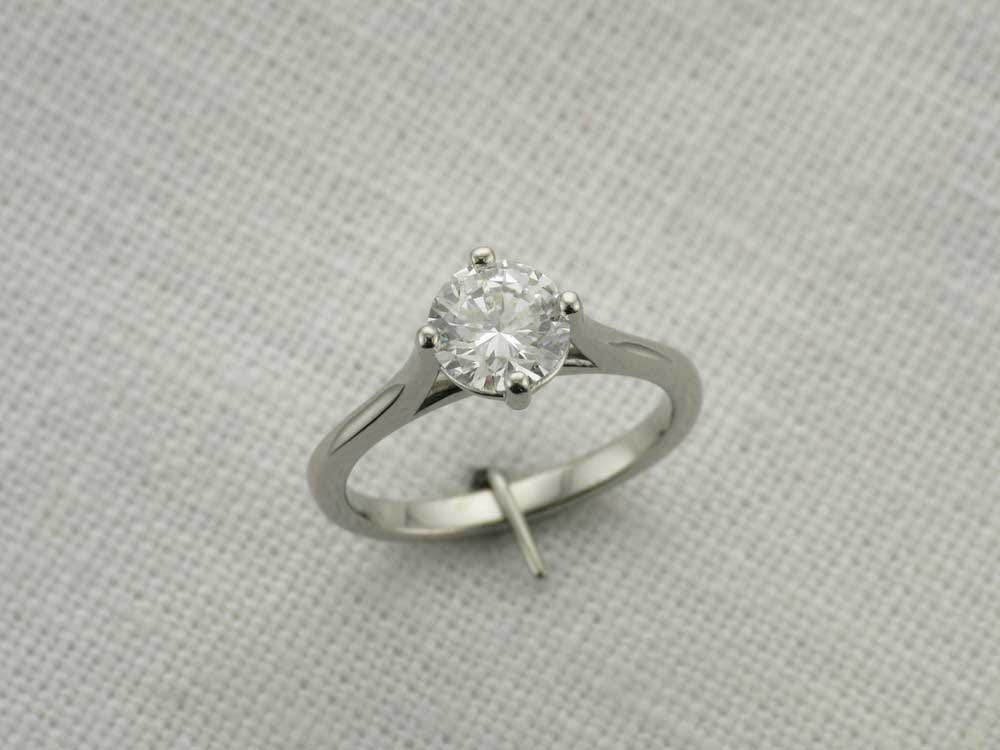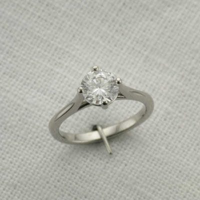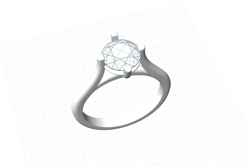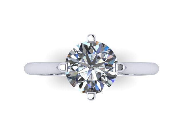 Our client, for this weeks 'Ring of the Week', requested a contemporary, four claw solitaire engagement ring. The engagement ring needed to be created so that it could accommodate an existing 14 kt White Gold wedding band. To ensure the engagement ring would be a perfect fit for the wedding band, we completed a 3D scan of both. This would give an accuracy that would be necessary to facilitate the flush fit 'bridal set'. The engagement ring features a Cathedral style shank with a 'tricked up' gallery rail for that added level of detail. It has a hyperbolic paraboloid shape (or 'pringle'/saddle shape). The curve of the rail mirrors the bridge curvature and is contrasted by the curvature of the Cathedral lips. In doing so, it gives this ring that extra design element and finesse when looking through the front ring view.
