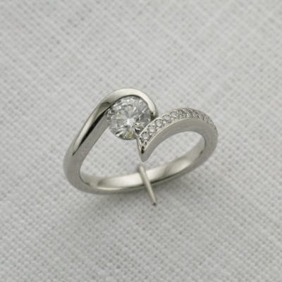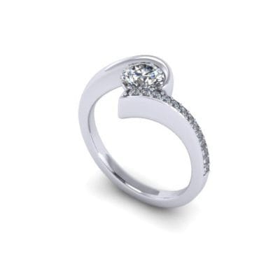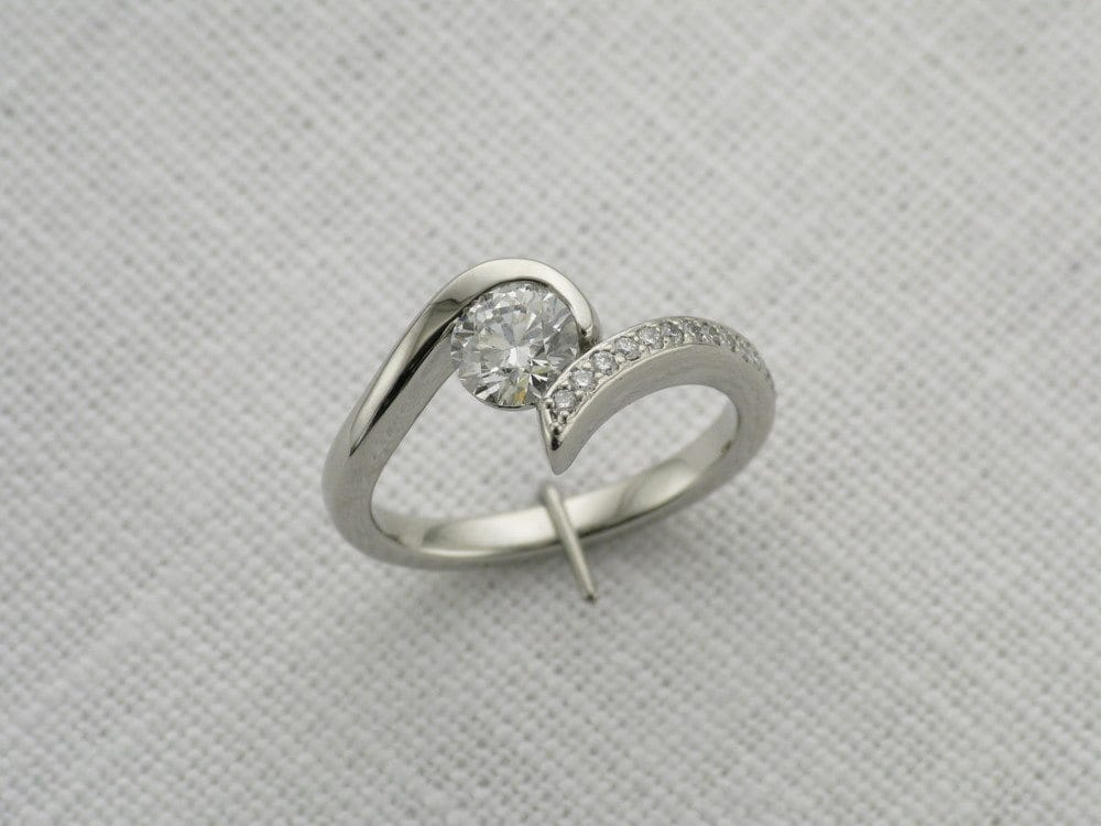 Inspired by Shaun Leane’s signature 'Entwined Rings' our client expressed a desire to replicate some of the design elements whilst adding their own unique, personal wishes. Through our consultation process, we collectively agreed upon creating this modern Platinum single stone twist ring. The centre diamond is encased by a swirl of platinum leaving the other shoulder to glide past the centre stone. This is a very tactile piece, due to the fluidity of the sleek design and the superior properties of platinum.