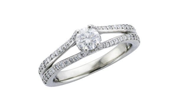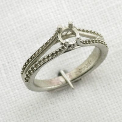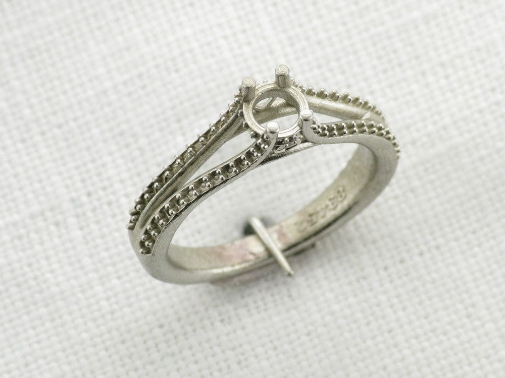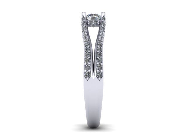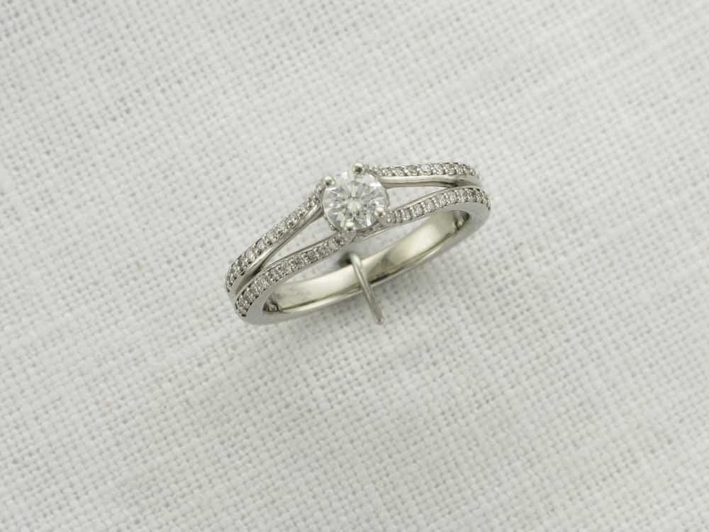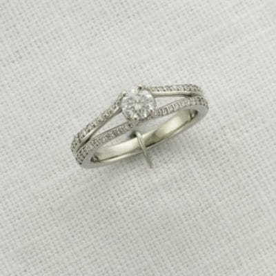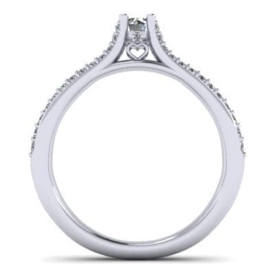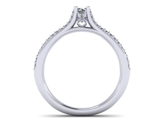 Our project for this week's 'Ring of the Week' is this beautifully bespoke ring. It was made from Platinum and features a double row of diamond set shoulders which rise up toward the brilliant round cut, diamond centre stone which is supported by the four claw setting. This is a very unique ring with the personal, sentimental design elements focused around the centre. From the through finger view you are able to see the tiny diamond bezel set into the gallery and directly under the gallery, is a beautifully pierced heart.