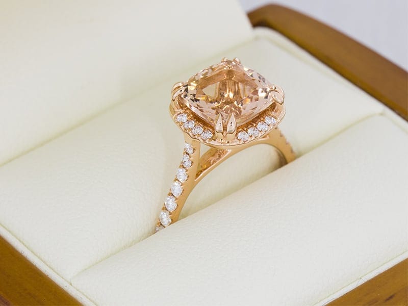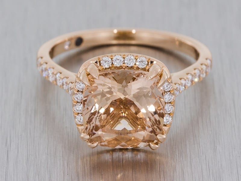 Cushion Cut Morganite And Diamond Engagement Ring