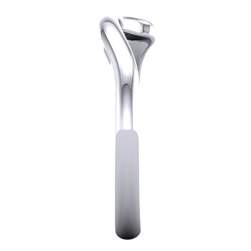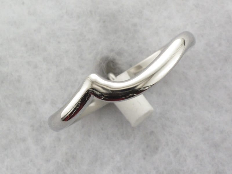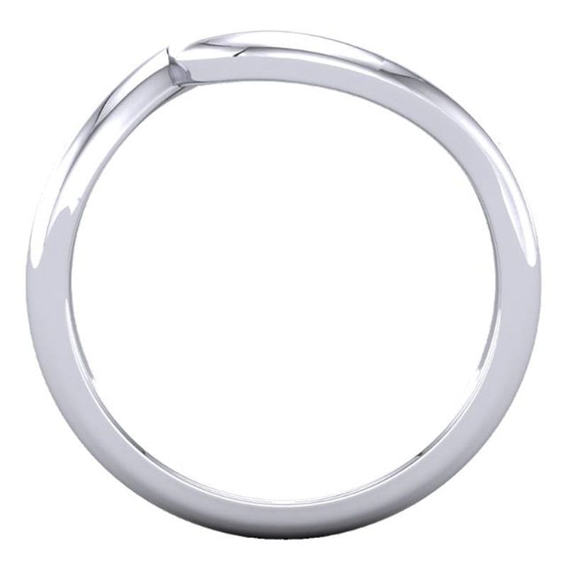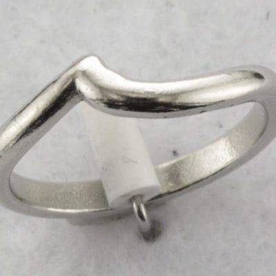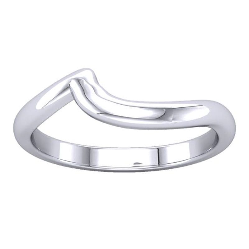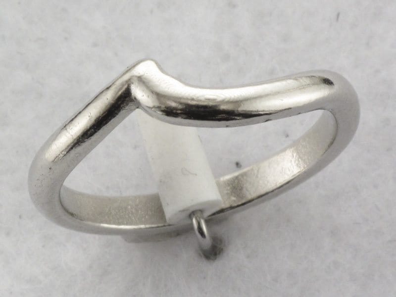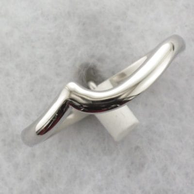 This perfectly fitting custom wedding band has been crafted to slide into place alongside an engagement ring we previously created. The platinum wedding band flows in what we call a ‘wave’ fitting to compliment the bypass solitaire engagement ring to perfection.