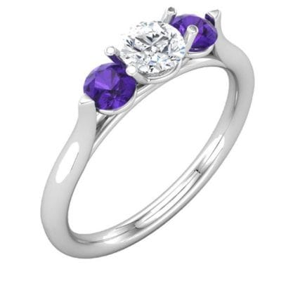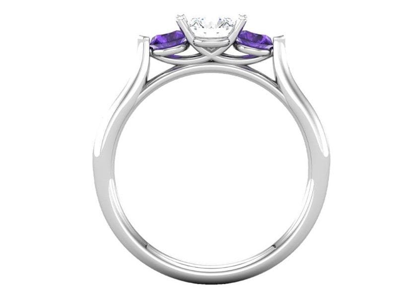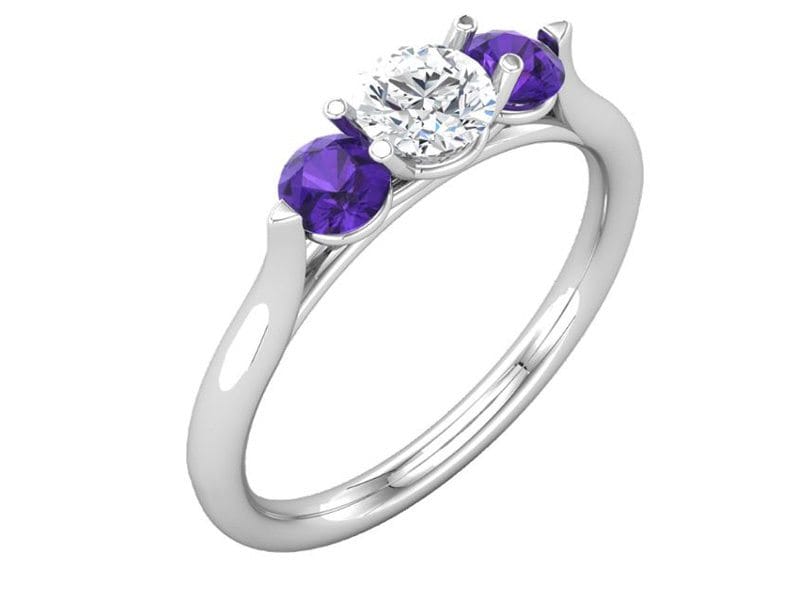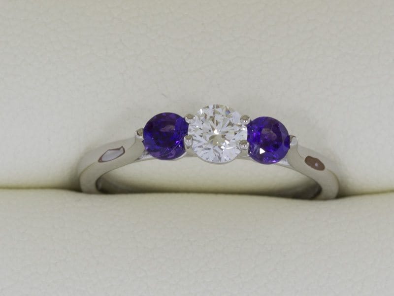 Our client approached us wanting a trilogy style engagement ring. Through our design consultations, we created a ring with a centre diamond stone and two accent amethysts set in a palladium ring shank. It’s not always easy to find a gemstone that accentuates the centre stone that might be desired, which is where a bespoke service helps. This pretty style now captures sentiment and meaning that the client wanted to convey, but with a classic and timeless style.