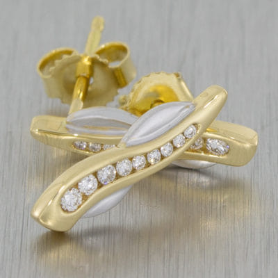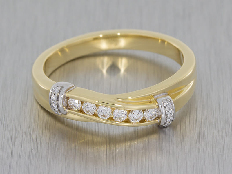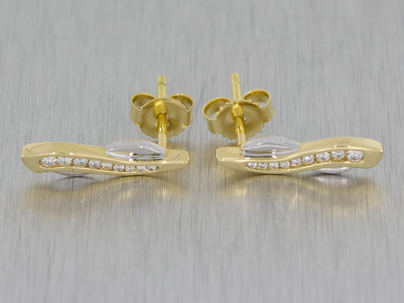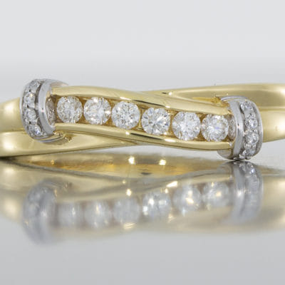 A beautifully designed anniversary ring set with diamonds and the incorporation of two colour metal enables these beautiful pieces to be worn on any occasion. Our client was originally looking for an anniversary ring that was understated to compliment his wife's other rings which I think we have captured perfectly. There was even enough room in the budget for a matching pair of earrings. We took the main design element of the twist and reduced the size to create an everyday earring