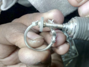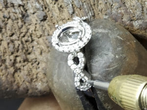 At Durham Rose, we don’t just stockpile materials and use what we’ve got to hand. We source every single gem used to create our rings for each individual project. That way, we can be sure that we’re delivering exactly what our clients are looking for. So, that’s one of the first steps of ring creation. Once we’ve got what we need, we use your CAD designs to create a wax model of your ring, cast your basic band, then hand finish it. That means filing, polishing, stone setting, hallmarking, engraving, the lot.