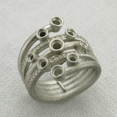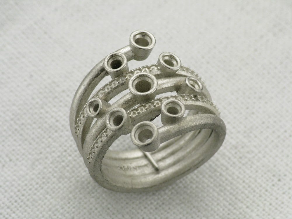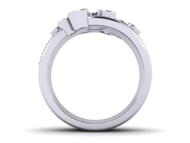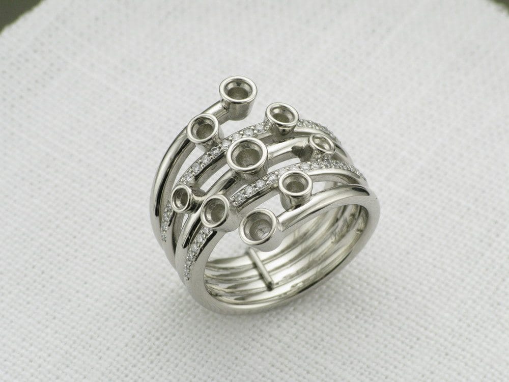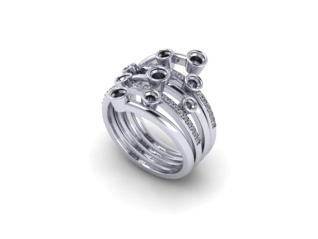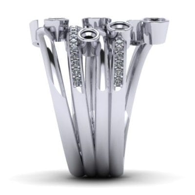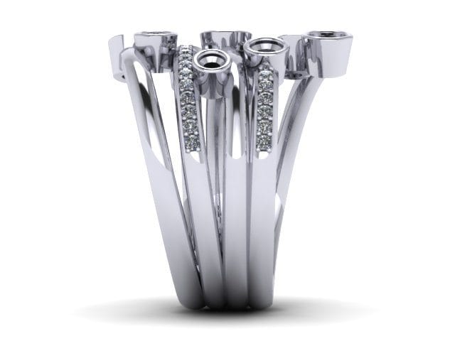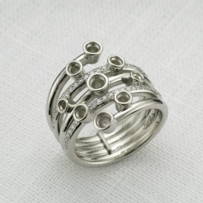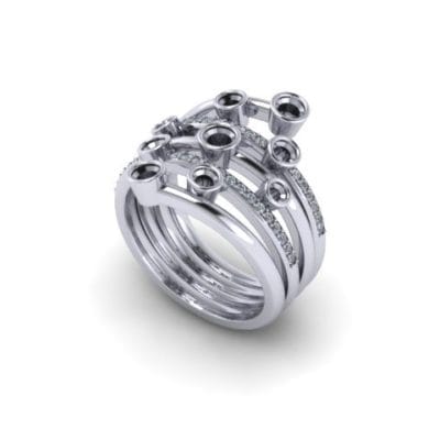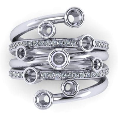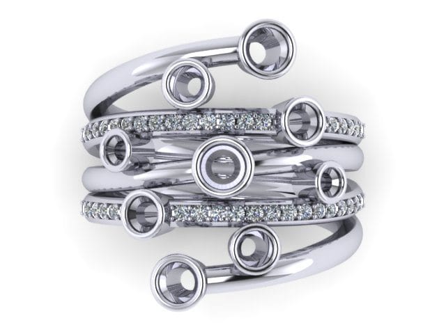 This is a real showstopper of a ring! Our client really wanted a multi band but wanted to use uncalibrated antique stones from her mothers ring as well. Some of the bands are diamond set which adds extra sparkle and the larger diamonds are bezel set so they stand out. The sparkle on this piece is wonderful!