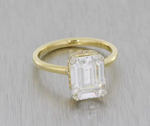 - Colour – Although diamonds come in a range of colours, it is possible to get a completely clear, ‘white’ diamond. We treasure these for their unparalleled lustre and clarity. On this, moissanite can’t compare. In large moissanites a slight grey or yellow tone can usually be seen. But this needn’t be a bad thing. Choose well, and it will add to the character of your custom engagement ring. Many people love the moissanite for this quality.