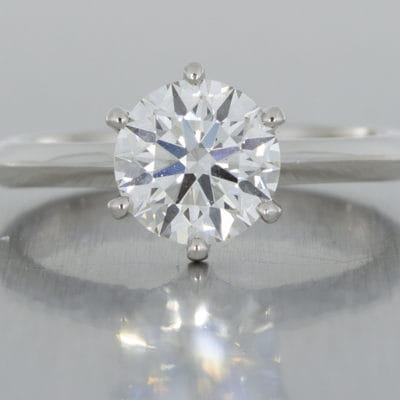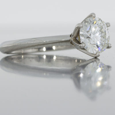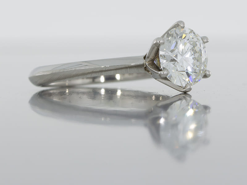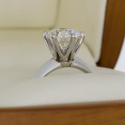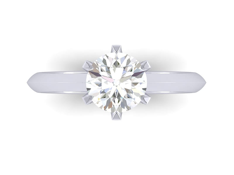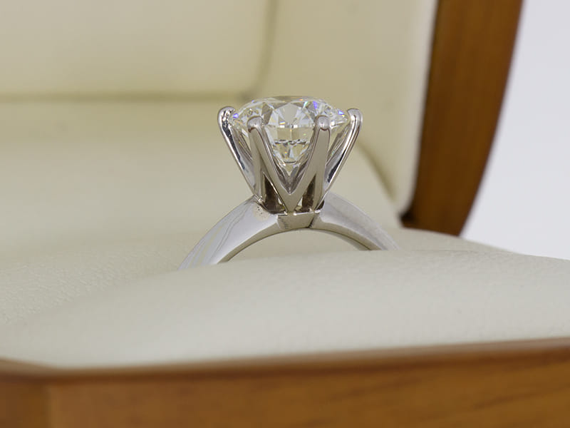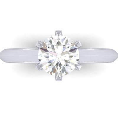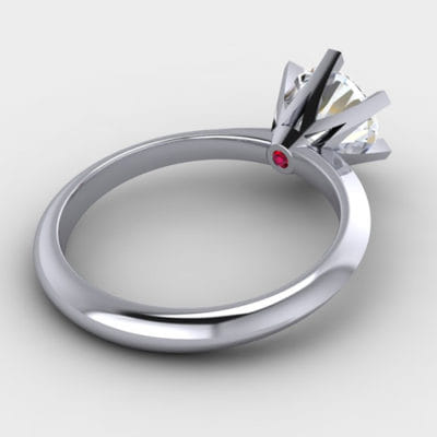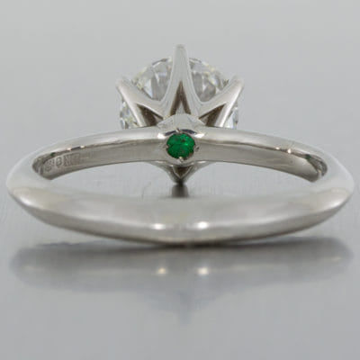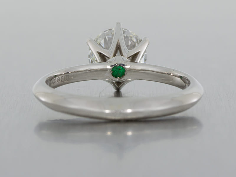 This unique twist to a traditional solitaire engagement ring featured an awe-inspiring 1.25ct Crafted by Infinity Diamond, set in a crown collet to keep a highly elegant and classic feel to the ring. The band was shaped into a knife-edge profile and we set a hidden emerald under the centre stone in the band to add a splash of colour in a subtle and personal way.