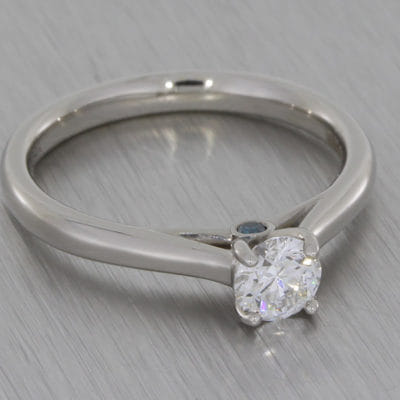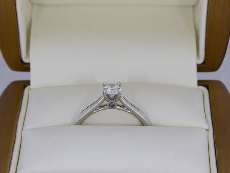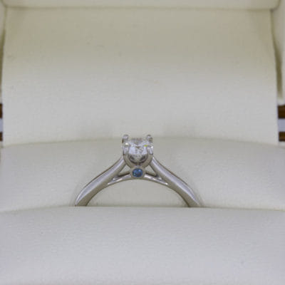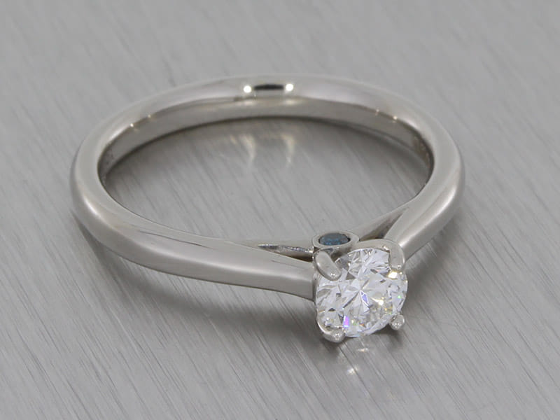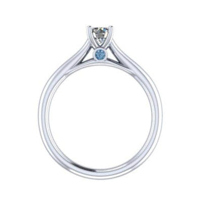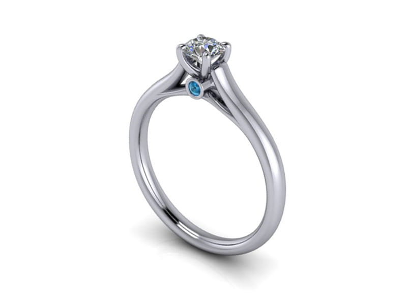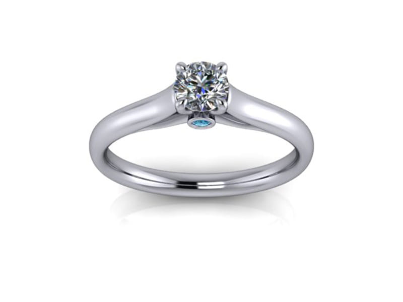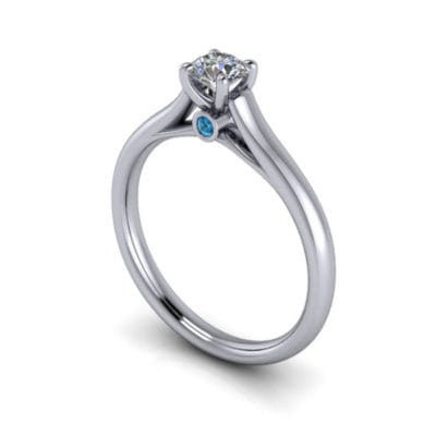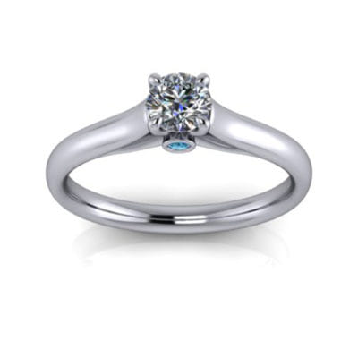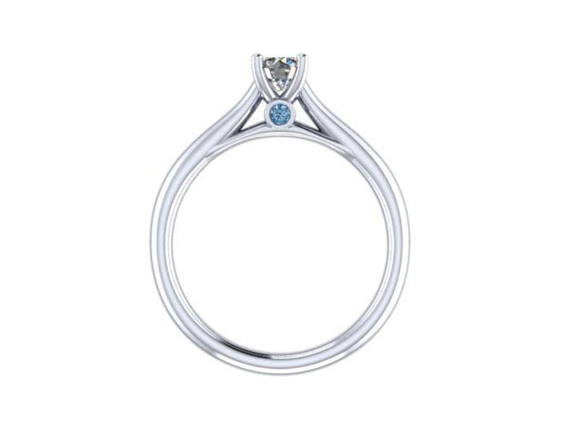 This round brilliant diamond ring will be sure to catch the eye with the tapered band drawing your attention to the magnificent centre stone. The design features a blue diamond peak stone which adds the perfect splash of colour.