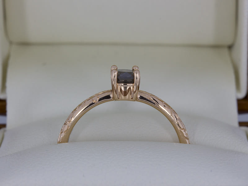 Rose Gold Grey Diamond Ring Delicately Engraved with Floral Detailing