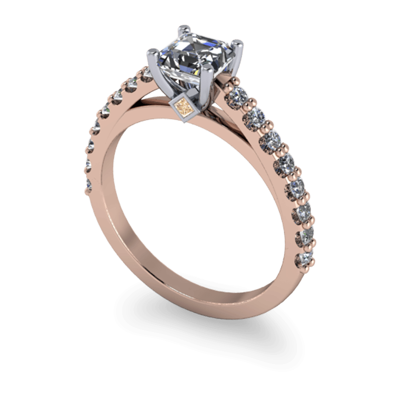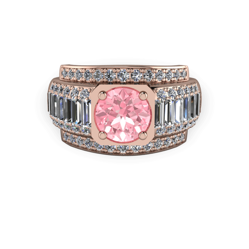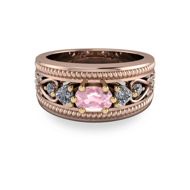 A stunningly feminine take on an enduring classic, rose gold has all the luxury of gold, coupled with a unique and eye-catching pink hue. With this beautiful metal you can give your bespoke ring a colourful twist on the traditional, and perfectly complement your selected diamond or gemstone. Rose gold gets its distinct colouring from its union with copper and silver, and has come to represent fidelity and love, making it the perfect precious metal for a wedding or engagement ring. Choose this attractive coloured gold for your hand-crafted ring, for a fresh and exciting taste of high-end indulgence.