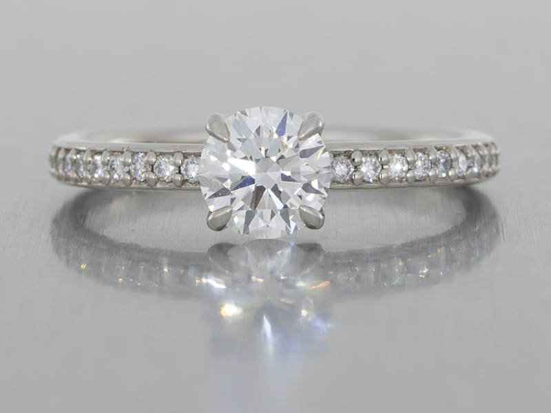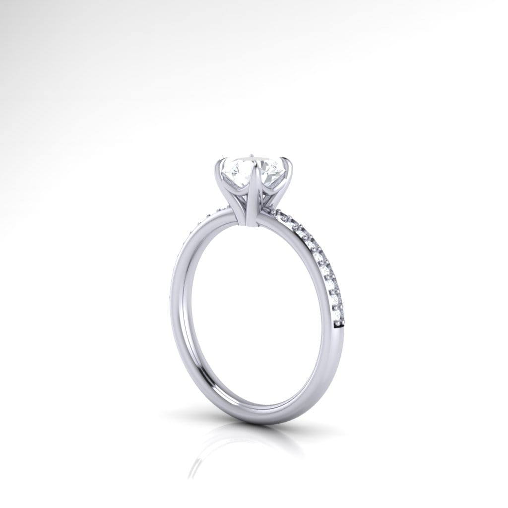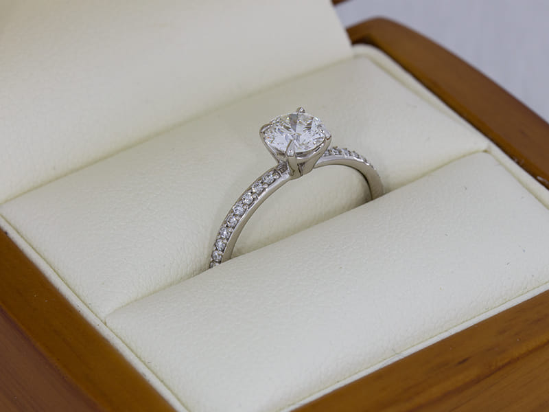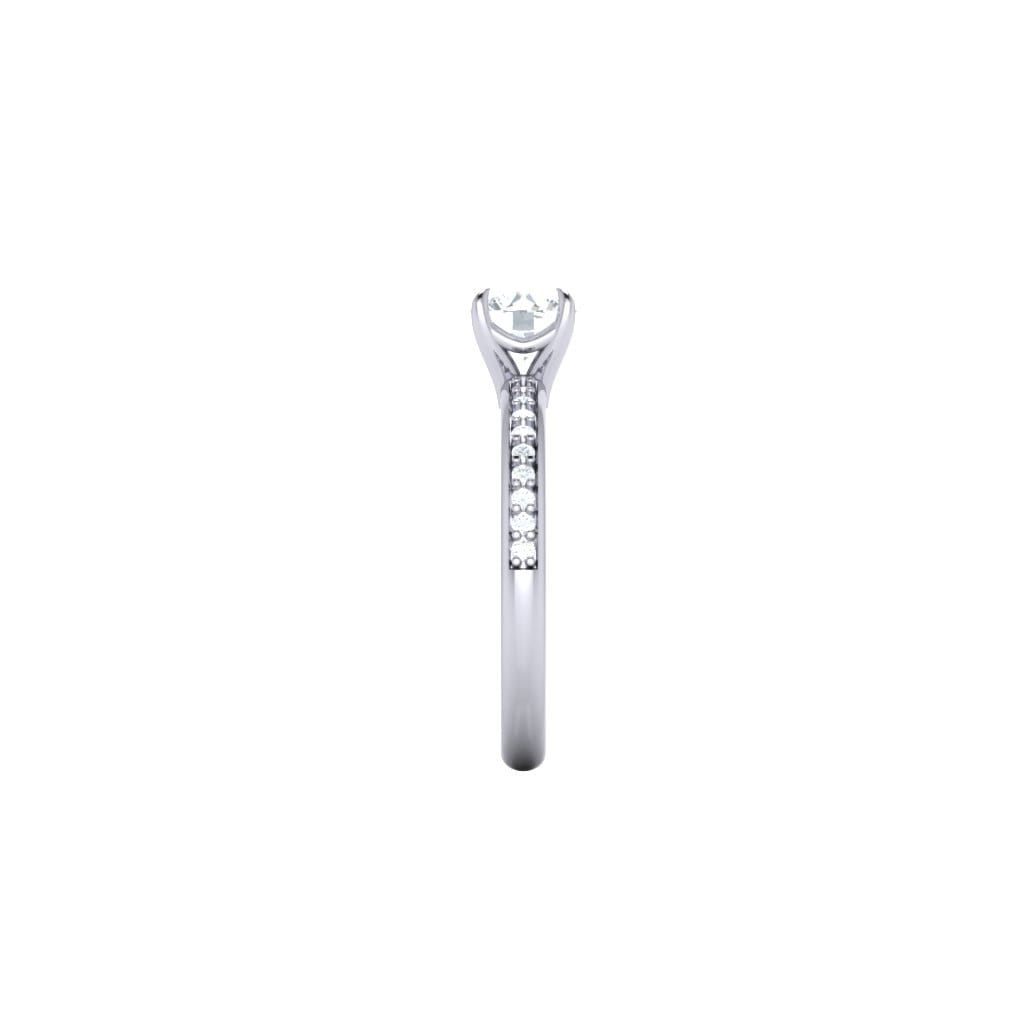 The centre stone of this ring really take centre stage with the round brilliant diamond shoulders providing elegant detail.
