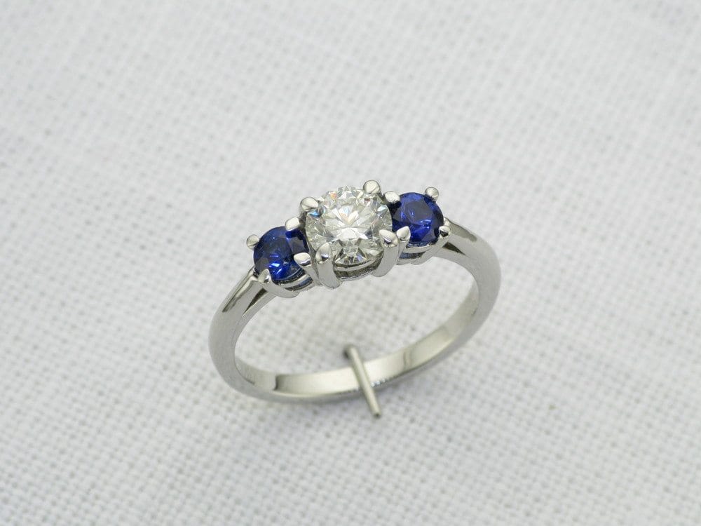 Traditional three stone platinum sapphire and diamond ring – Portfolio
