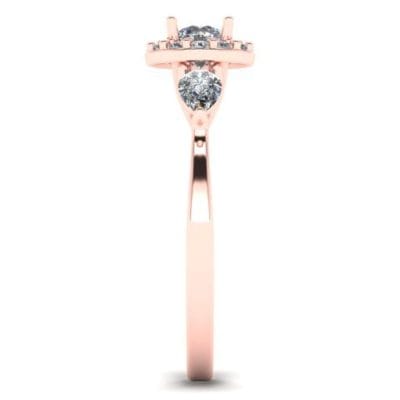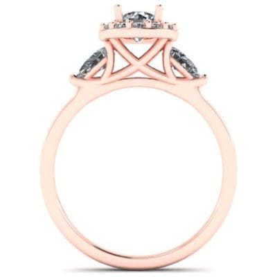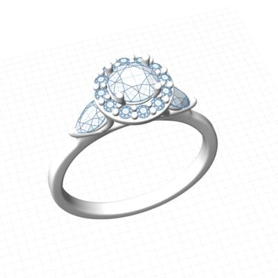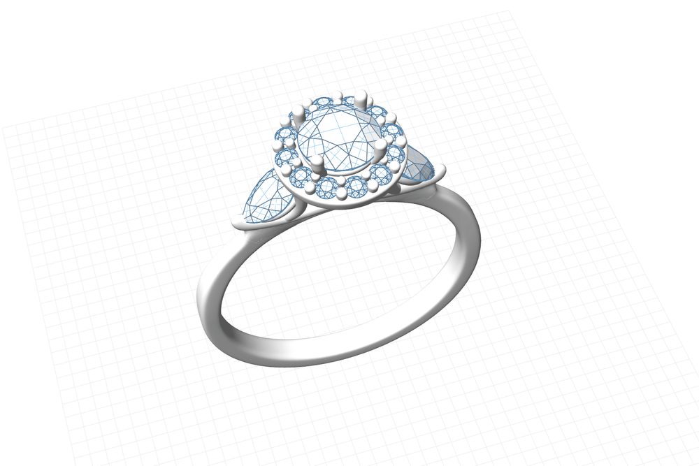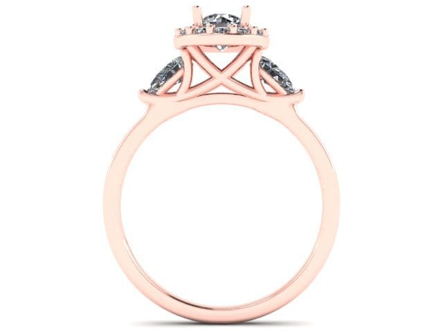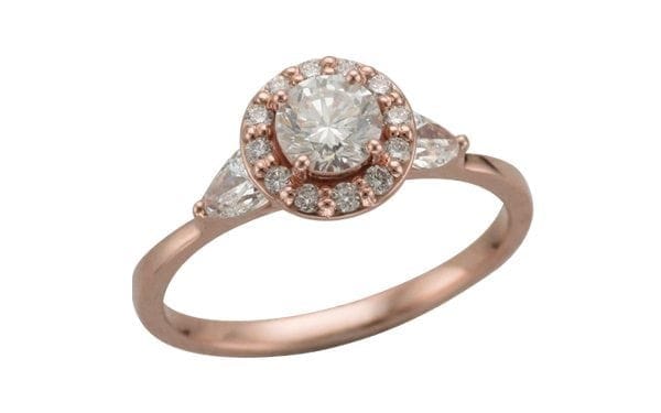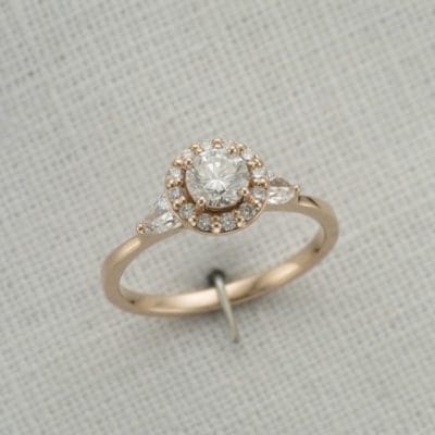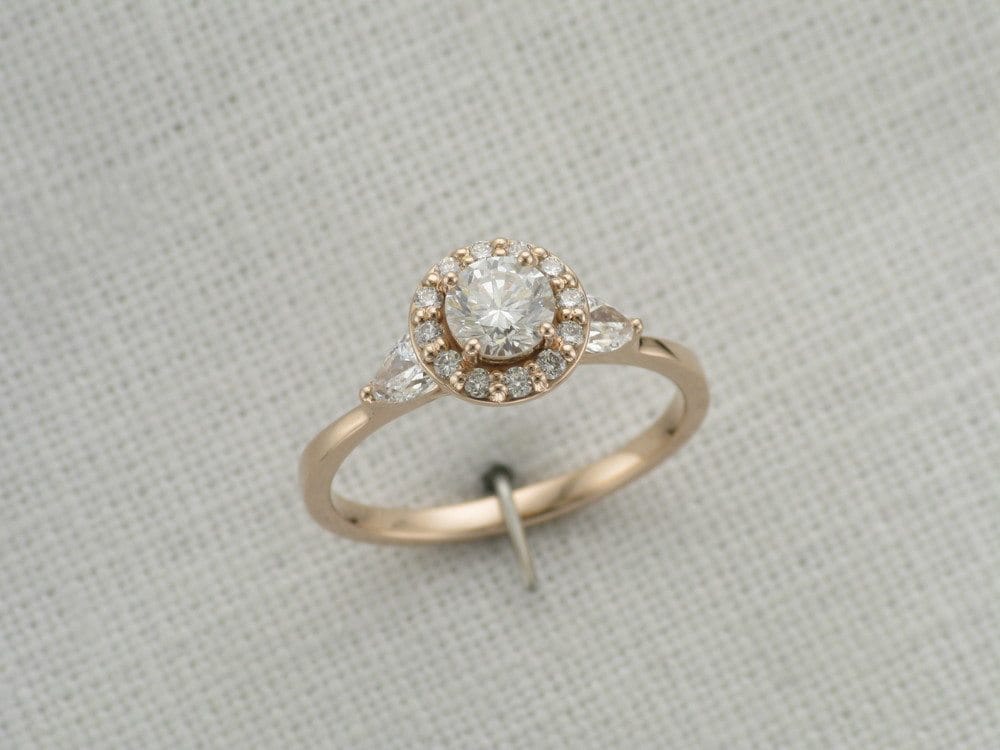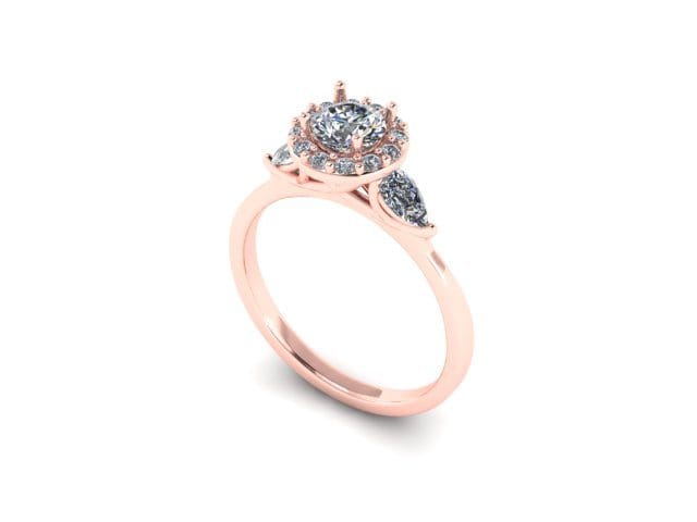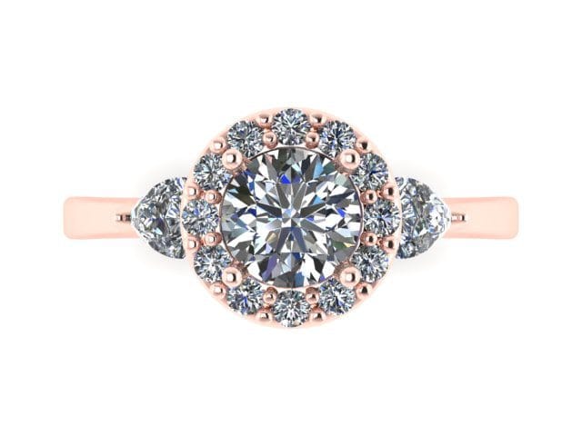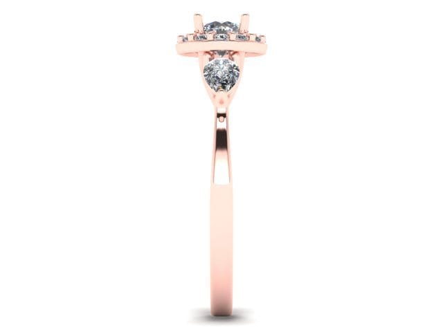 The 'Ring of the Week' project this week was based upon the design brief from our client who was studying Jewellery design at University. The client had a very specific design concept and after consultation we collectively agreed on this beautiful design. The rose gold provides a soft and romantic atmosphere and the dainty diamond cluster creates and completes the classic, timeless design. Our biggest challenge was that of incorporating the pear stones onto the ring, as our client only wanted the centre stone to feature within the halo. In order for the pear shaped diamonds to look as though they belonged, we raised the centre stone to angle and tuck them slightly under the centre cluster. From the through view the under gallery is perfectly proportioned and detailed without creating fuss and retaining delicate design features. The diamonds roll into each other and sit perfectly into the softly tapered square band, completing the ring.