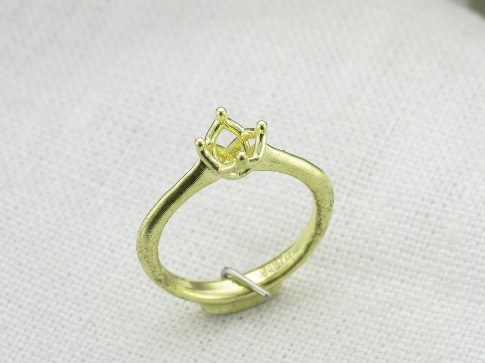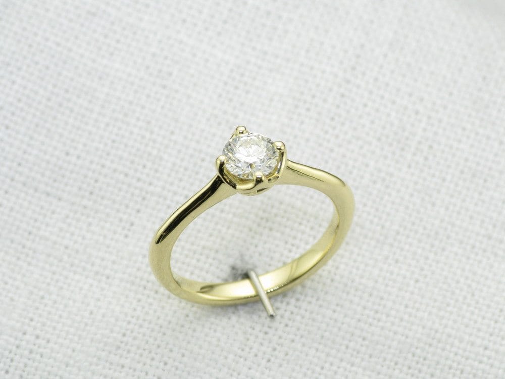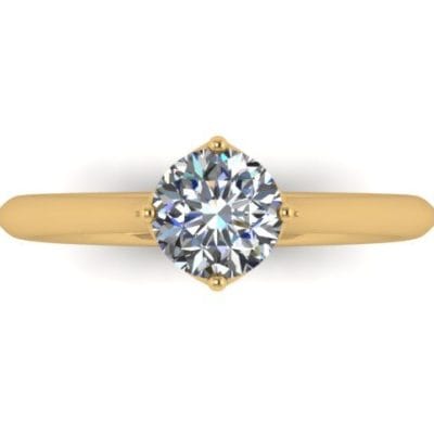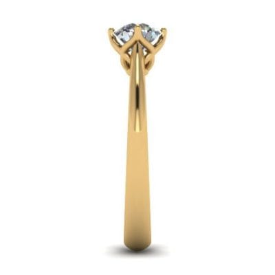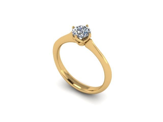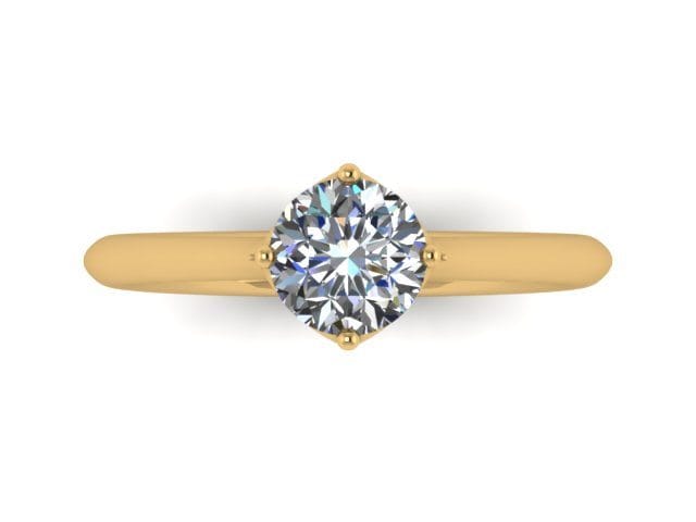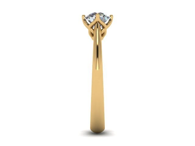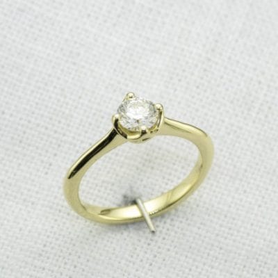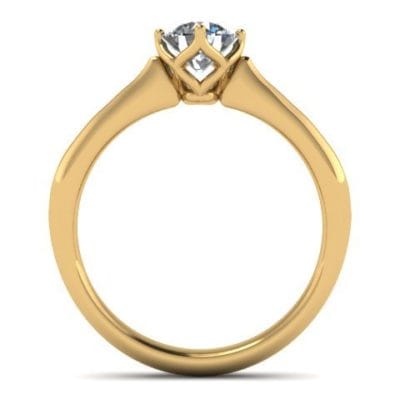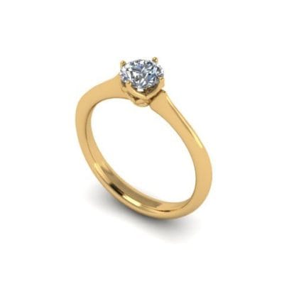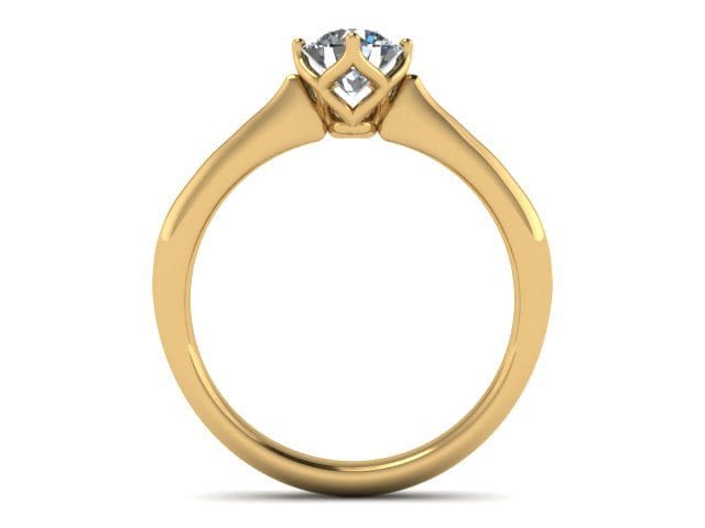 A very traditional yellow gold engagement ring with a beautiful four claw set diamond. The claws are set North, East, South and West to retain the shape of the stone. From the side view you can see the really pretty cut out section that exposes the stone. This is a really gorgeous ring that would look stunning on any finger!